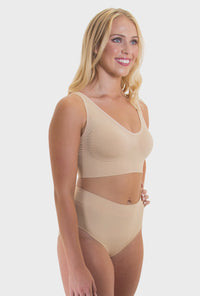 Made on circular machinery, our seamless intimates and apparel range offers stretchy support and easy flexi-sizing making it easy to shop online.