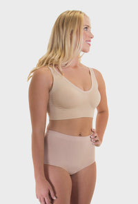Made on circular machinery, our seamless intimates and apparel range offers stretchy support and easy flexi-sizing making it easy to shop online.