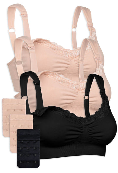 3 Pack Bamboo Wire Free Maternity and Nursing Bra + Bra Extender Set